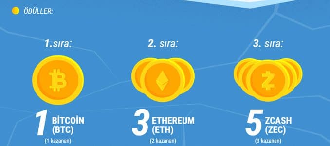 - 3.lük: 5 Zcash (ZEC) — 3 kazanan